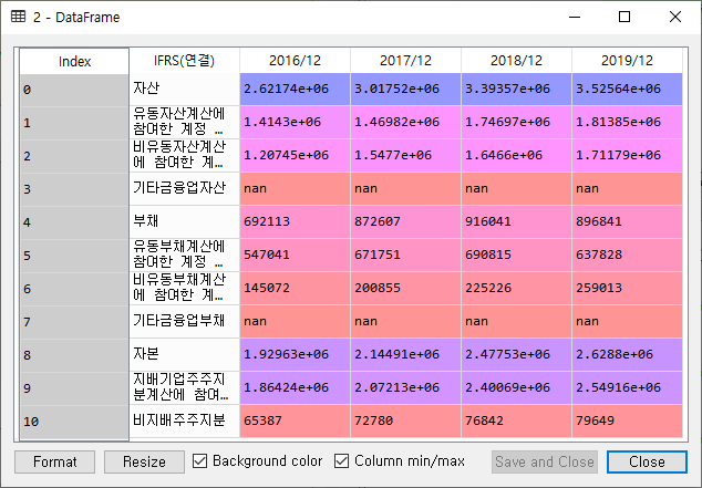 따라서 IFRS(연결) 이라는 column을 index로 해주기 위해 set_index를 이용해 주었습니다.
